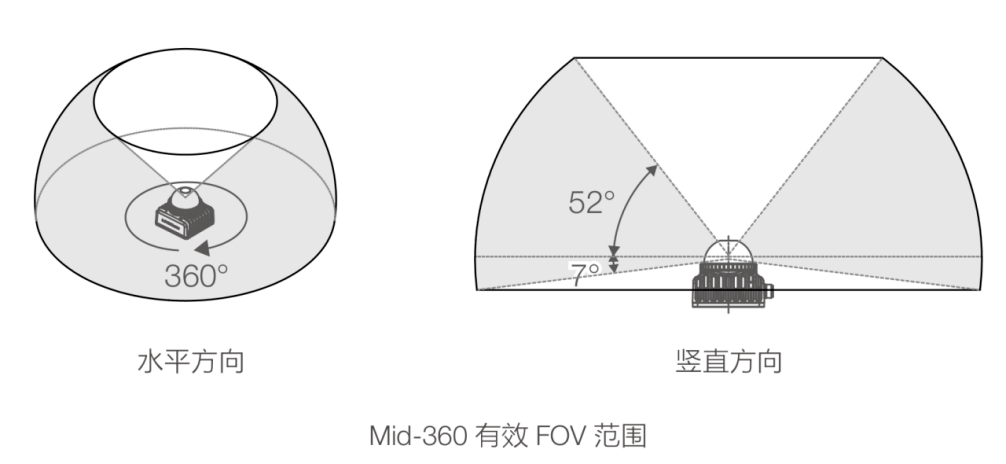 3d雷达以mid360为例,需已知其坐标定义和最大覆盖扫描范围,如图所示。